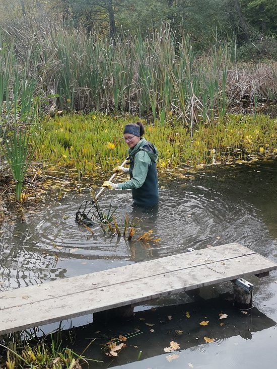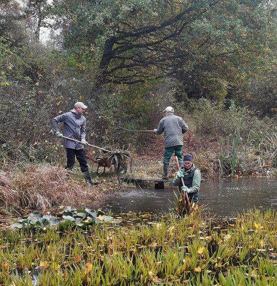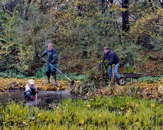 ![]() Ganze Arbeit haben die vielen Helfer am 25. Oktober geleistet und sind noch kurz vor dem großen Regen fertig geworden. Der Auwiesentümpel hat nun wieder eine schöne große freie Wasserfläche. Es ist vor allen Dingen die Krebsschere, die immer wieder versucht, die ganze Wasserfläche zu erobern, so dass wir sie regelmäßig bändigen müssen. So nebenbei bekamen auch einige Sträucher noch einen Pflegeschnitt. Die Gemeinde hatte uns für die Aktion einen Container zur Verfügung gestellt, der am Schluss gut gefüllt war, so dass wir wie sehr zufrieden sein konnten mit der Aktion. ![]() ![]() ![]() ![]() ![]() ![]() |