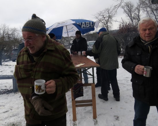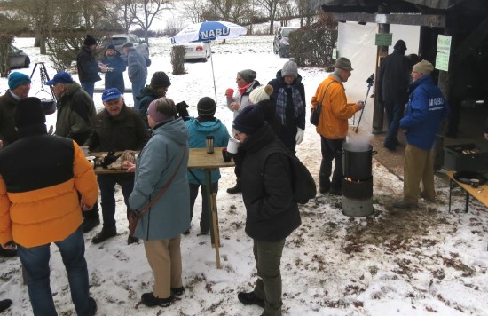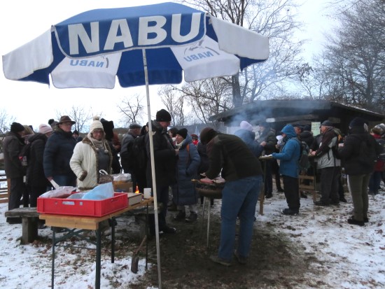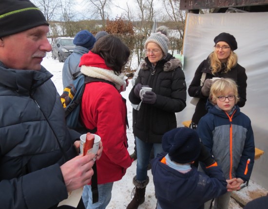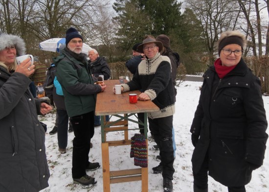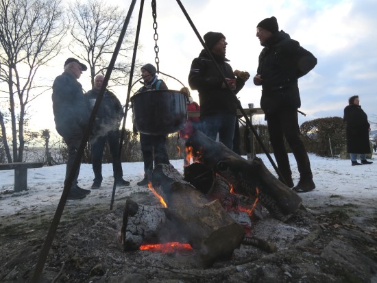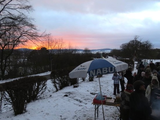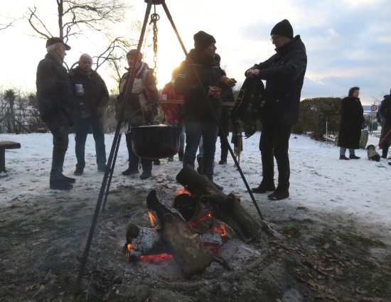 Perfektes Wetter für die Glühweinfete: Ein wenig Schnee, Temperaturen so um die null Grad, ab und zu kam die Sonne raus und prÄsentierte einen tollen Sonnenuntergang. Glühwein, Saft und Würstchen schmeckten wieder hervorragend, gute Wünsche zum neuen Jahr und Gesprächsstoff gab es reichlich. So verbreitete die Glühweinfete auch in diesem Jahr wieder das typische Flair, dass die Gäste an jedem ersten Samstag im neuen Jahr schätzen. | |