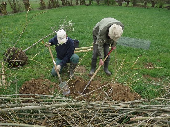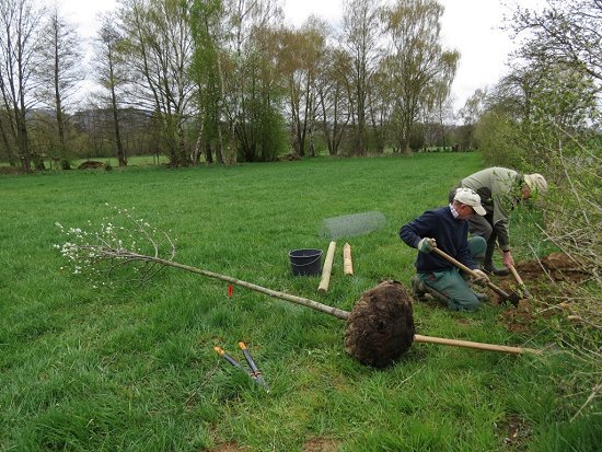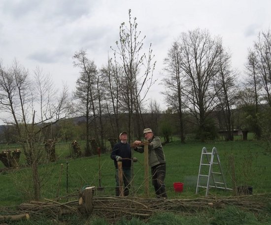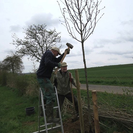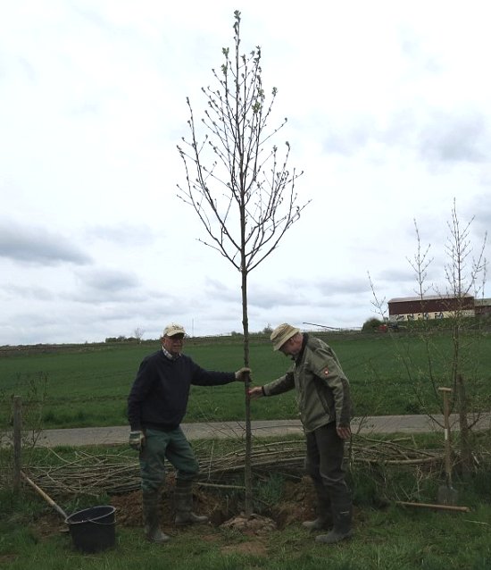 Direkt nach der Anlieferung eines stattlichen Exemplars des Jahresbaumes 2024, haben Jochen und Wolf-Dieter diesen mit viel Liebe, guter Erde und einem ordentlichen Schluck Wasser in die Erde gepflanzt. Nun hoffen wir, dass er gut gedeiht und uns viel Freude bereitet! ![]() Erst mal musste ein passendes Loch gebuddelt werden. ![]() Nebenan liegt der Baum und wartet geduldig, bis das Loch für ihn groß genug ist. ![]() Eindeutig für den NABU Wehrheim bestimmt... ![]() Passt! ![]() Die Pflöcke zum Anbinden dürfen nicht fehlen. ![]() Sorgfältig wird der Baum angebunden. ![]() Ganz schön stattlich! Sieht super aus! Die echte Mehlbeere gilt als anpassungsfähiger, hitze- und trockenheitstoleranter Laubbaum und reiht sich damit