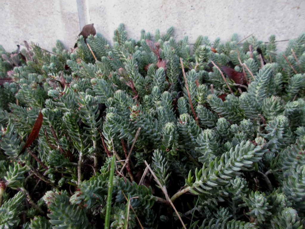 Felsen-Fetthenne (Sedum rupestre) auf dem artenreichen Grünstreifen hinter dem Bahnsteig 2 am Bahnhof Wehrheim | |||