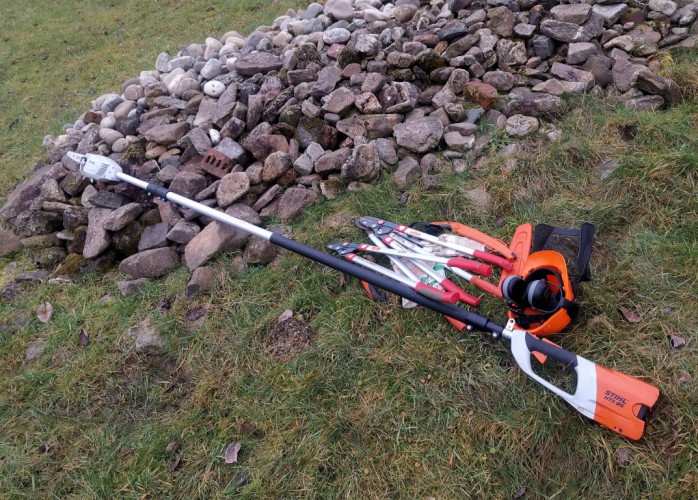 Wir haben einen Apfelbaum geschnitten, die Äste auf die Totholzhaufen verteilt, Brombeeren entfernt und die Vögel mit Futter versorgt.
