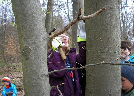 Aufhängen der Haselmauskästen mit der NAJU am 22. April (Fotos: Andrea Pfäfflin)
