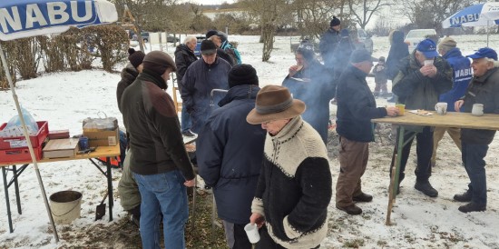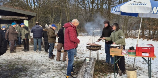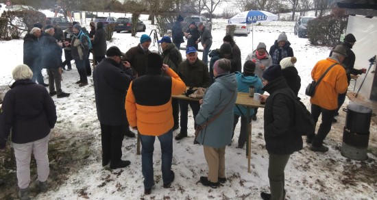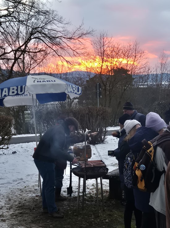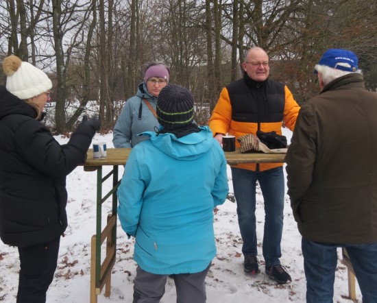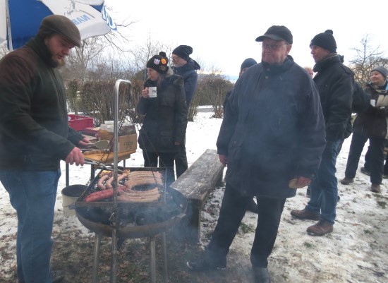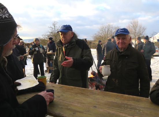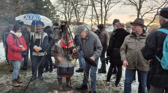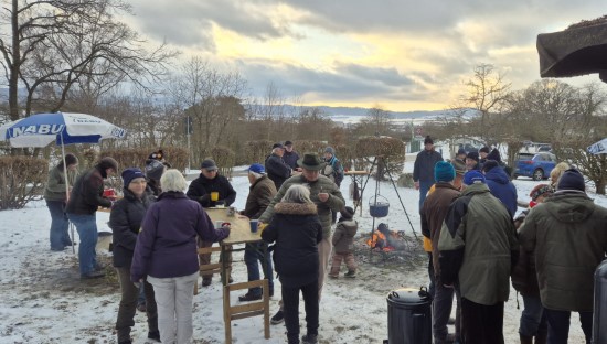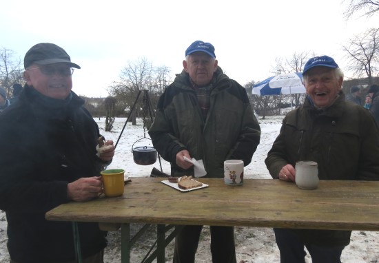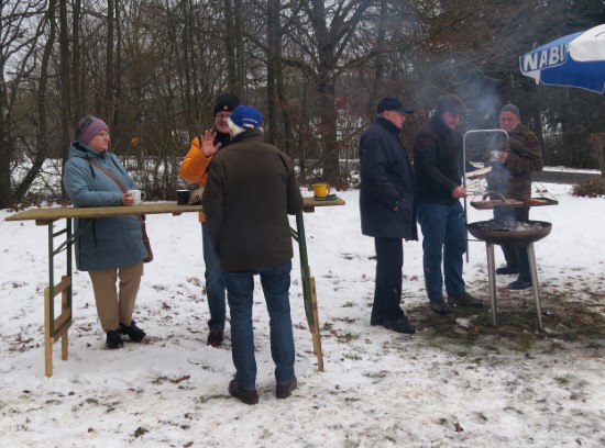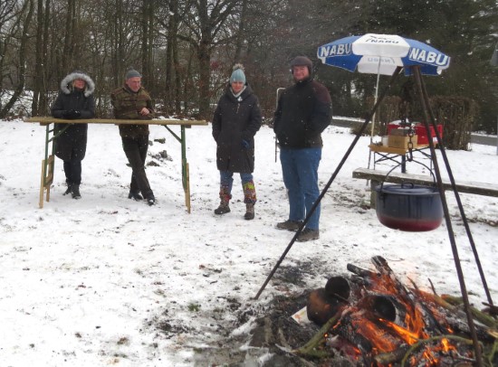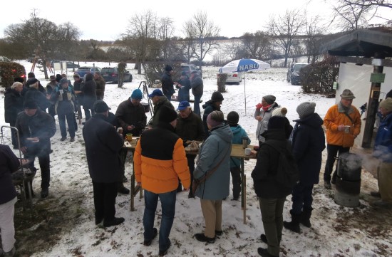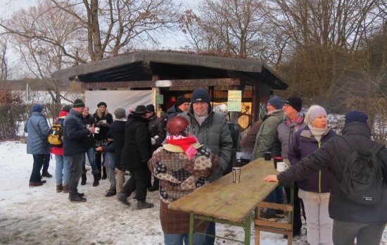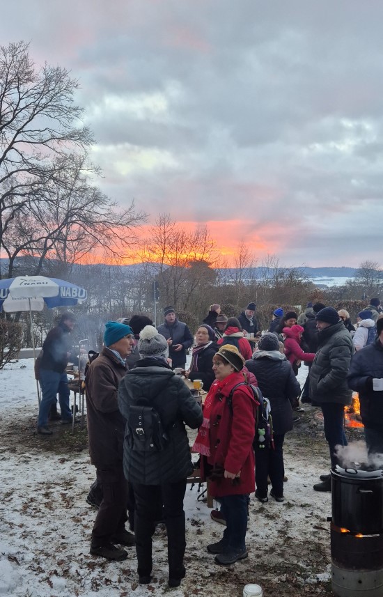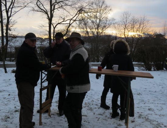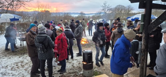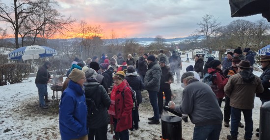 Perfektes Wetter für die Glühweinfete: Ein wenig Schnee, Temperaturen so um die null Grad, ab und zu kam die Sonne raus und prÄsentierte einen tollen Sonnenuntergang. Glühwein, Saft und Würstchen schmeckten wieder hervorragend, gute Wünsche zum neuen Jahr und Gesprächsstoff gab es reichlich. So verbreitete die Glühweinfete auch in diesem Jahr wieder das typische Flair, dass die Gäste an jedem ersten Samstag im neuen Jahr schätzen. | |