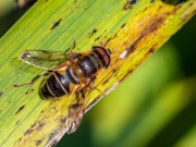 11.08.2019: Totenkopfschwebfliege (Myathropa florea) auf den Auwiesen |