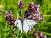 20.07.2025: Viele Weißlinge, auch dieser Grünaderweißling, flattern derzeit zahlreich von Blüte zu Blüte |