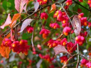 13.10.2018: Noch aktiv: Tagpfauenauge auf Pfaffenhütchen im Abendlicht |