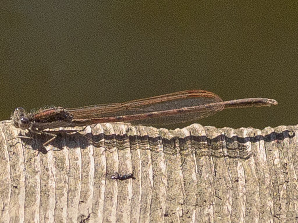 Nicht ganz sicher bestimmt, aber ein später Fund, falls sie es ist: Gemeine Winterlibelle in den Auwiesen | |||