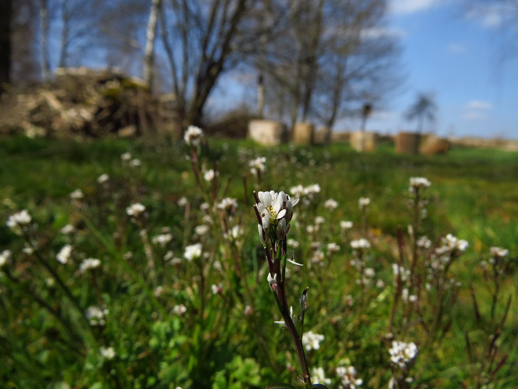 Behaartes oder auch Garten-Schaumkraut (Cardamine hirsuta) mit seinen winzigen weißen Blüten fühlt sich im Feldgehölz Wolfskehl besonders wohl | |||