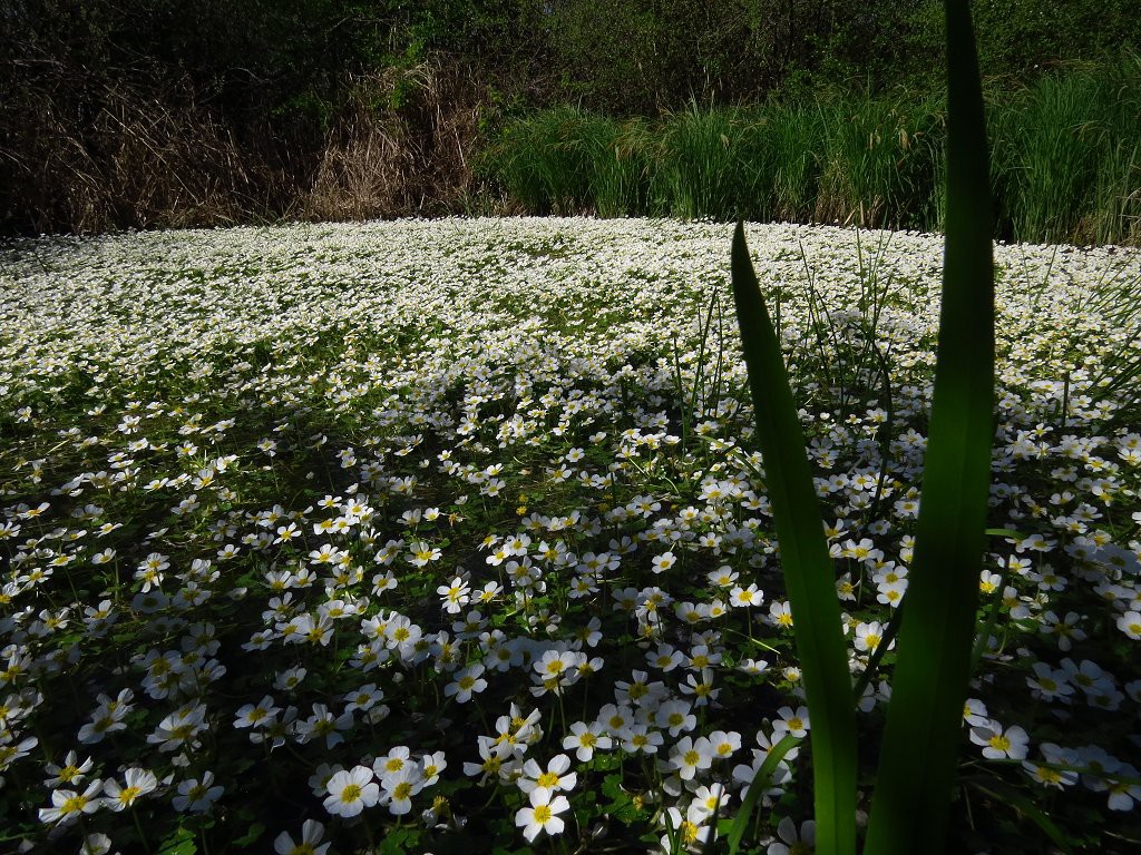 Der Wasserhahnenfuß am unteren Leinwiesentümpel ist eine Pracht: Dicht an Dicht strecken sich die Blüten in die Sonne und es ist kein Wasser mehr zu sehen... | |||