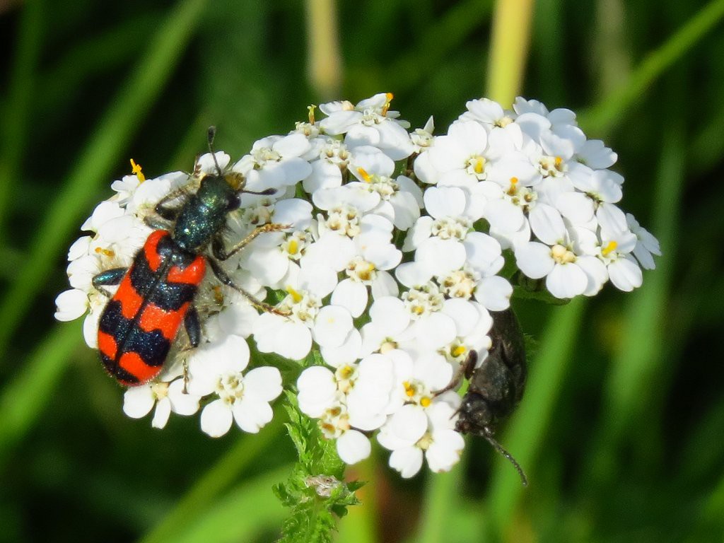 Zottiger Bienenkäfer (Trichodes alvearius) auf Schafgarbe auf den Auwiesen | |||
