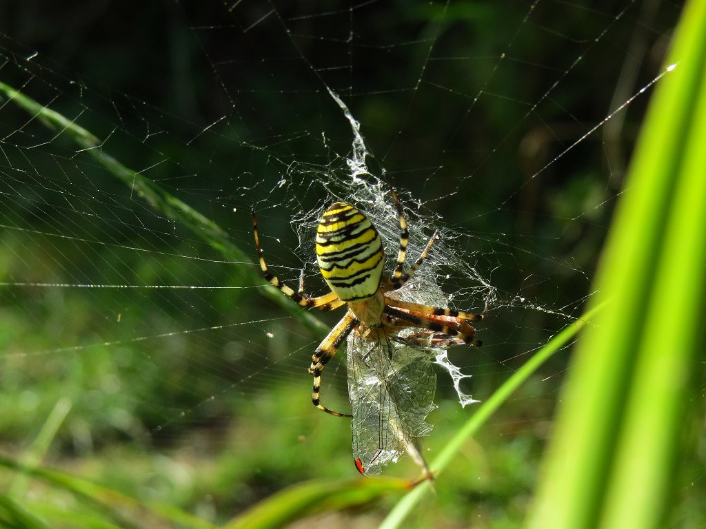 Wespenspinne hat eine Libelle erbeutet (Auwiesen)