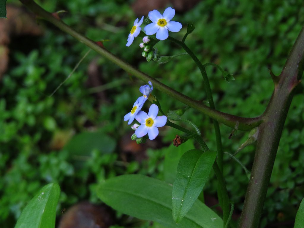 Sumpf-Vergissmeinnicht (Myosotis scorpioides) am Ufer des Tümpels im Feuchtgebiet Löwenhain | |||